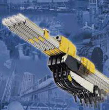Троллейная система раздельного изолированного токоподвода поставляется для нагрузок 315А, 450А и 630А. Диапазон рабочих температур от -30°C до +55°C. Скорость токоприёмника до 600 м/мин.